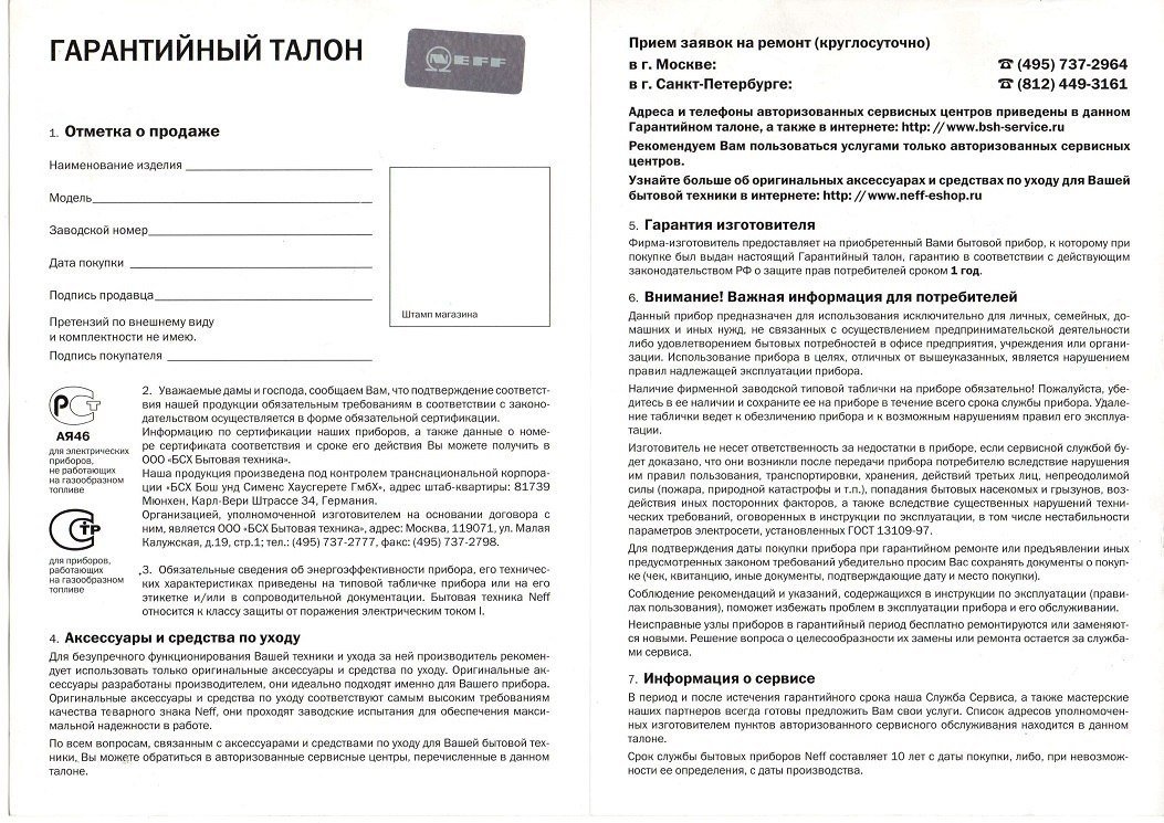 Период, в течение которого, при обнаружении в приборе недостатка, производитель обязан с помощью Авторизованного Сервисного центра устранить эти недостатки.